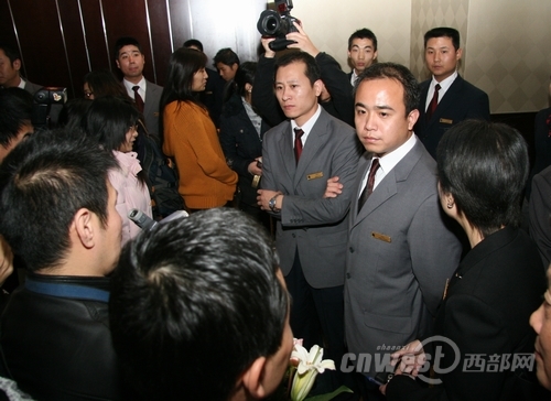 由于今天是婚禮正式舉行的日子,酒店方的保安工作比此前進(jìn)一步加強。早早將舉行婚禮的二樓列為媒體禁地,對所有進(jìn)入二樓的人員都進(jìn)行嚴(yán)格盤查,肩負(fù)采訪任務(wù)的記者只得再次滲透進(jìn)入二樓,期間酒店方也曾試圖將媒體趕離二樓但未獲成功。最終媒體被阻擋在二樓宴會廳門外。幾番拉鋸戰(zhàn)不但讓酒店保安人員心里壓力不斷增大,也使雙方的對立情緒上升。