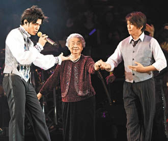 中新網(wǎng)12月10日電 金馬頒獎(jiǎng)之夜,周杰倫正在香港舉行一連7場個(gè)人演唱會的第4場,外婆是超級幸運(yùn)之星,這晚外婆應(yīng)邀上臺客串表演國標(biāo)舞,演唱會結(jié)束后,消息傳來,杰倫執(zhí)導(dǎo)的《不能說的秘密》在金馬獎(jiǎng)連中三元,媽媽、外婆都為杰倫開心不已。