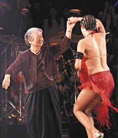另一波驚喜出現(xiàn)在他唱《迷迭香》時(shí),舞蹈老師阿宏突然請坐在臺下的周董外婆上臺,原來外婆是國標(biāo)舞高手,80多歲寶刀未老,在杰倫的帶動(dòng)下,與女舞者即席表演了一段,技驚四座,香港傳媒以“令觀眾拍爛手掌”形容現(xiàn)場的熱烈。