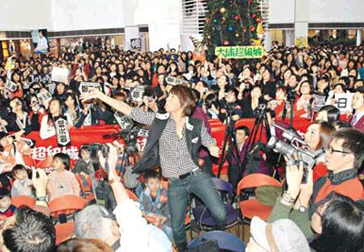 昨午在新港城中心舉行簽唱會的Danson大耍迷人功,當Fans大膽贊他的臀部夠翹,他即說:“你碰過還是你看過?上次在機場摸我那個人是不是你?”他又細心安慰在臺邊感動流淚的Fans。收到Fans送上豬仔儲錢罐時,他還笑問Fans是不是當他是豬,F(xiàn)ans說:“我當你是寶貝豬呀!”對于熱情的Fans,Danson大為感動,謙虛地表示視羅志祥和小綜為前輩,不會比較簽唱會成績。