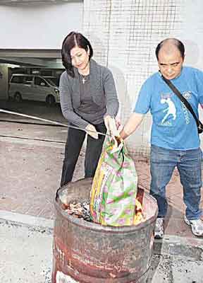 曾勵(lì)珍燒紙?jiān)闷方o肥姐。香港東方日?qǐng)?bào)圖。
