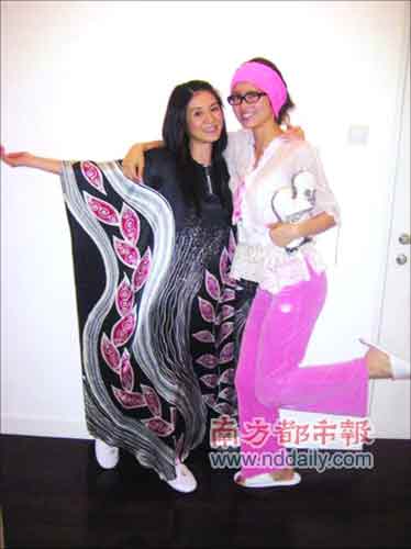 據(jù)了解,上月25日生日的梁詠琪,在朋友悉心安排下,以一星期不停慶祝的方式迎接“牛一”(粵語:生日)!前日她在博客上記下“生日周”的點滴:她首先與來自不同地方的歌迷在西貢燒烤,其后于生日的前一晚,在家中舉行一個睡衣派對。在派對中,GiGi為了讓客人有賓至如歸的感覺,特意穿上日常的睡衣,而好友楊采妮則首次穿上李心潔所送的漂亮睡衣到場,為展示睡衣上的手繪圖案,楊采妮更來個鳳舞甫士與GiGi合照。