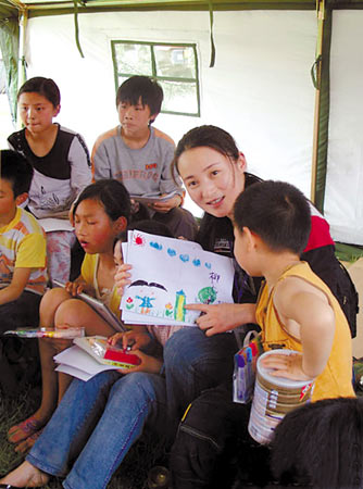 蔣勤勤跟隨全國婦聯(lián)“母愛在行動”小組奔赴四川重災(zāi)區(qū)綿陽,已經(jīng)身為人母的她得知地震之后,首先想到的就是災(zāi)區(qū)的兒童,當(dāng)?shù)弥獮?zāi)區(qū)緊缺奶粉等嬰兒食品時(shí),她特意帶去了價(jià)值10萬元的奶粉和牛奶。在災(zāi)區(qū)的幾天走訪,蔣勤勤主要探訪了災(zāi)區(qū)懷孕的準(zhǔn)媽媽和失去雙親的孤兒。蔣勤勤透露,災(zāi)區(qū)目前急缺的除了帳篷和藥品,許多生活必需品也非常匱乏,她此行就了解到,災(zāi)區(qū)就急需各種女性生理用品。