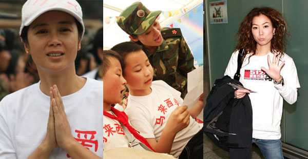 中新網(wǎng)6月2日電 四川大地震發(fā)生二十天來,演藝圈抗震救災(zāi)的熱情空前高漲,越來越多的明星參加各種賑災(zāi)活動,前往災(zāi)區(qū)送溫暖。明星總是人們愿意關(guān)注的焦點,這些明星在受到贊賞的同時,也遭到“作秀”的質(zhì)疑。高調(diào)捐款有炒作嫌疑,低調(diào)捐款被誤認(rèn)冷漠,領(lǐng)養(yǎng)孩子被視為炒作,深入災(zāi)區(qū)被當(dāng)作虛偽,明星真的好難當(dāng),下面我們回顧下這些天明星赴災(zāi)區(qū)的事跡。
