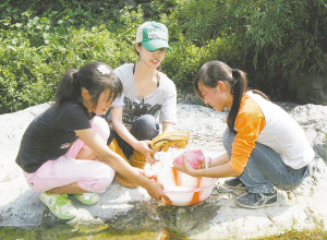 下午蔡依林又出發(fā)趕往朝天區(qū)羊木鎮(zhèn)白云村看望那里的受災(zāi)孩子。帳篷里,一名12歲的小男孩李糕引起了Jolin的注意,他小小年紀(jì)便包攬了家里的家務(wù),洗衣、做飯的同時還不忘努力學(xué)習(xí)。蔡依林讓小李糕拿出自己的語文課本,選他自己最喜歡的課文教她念,李糕選了一首唐詩,似模似樣當(dāng)起了老師。隨后,蔡依林又鉆進(jìn)了一頂帳篷。再次出來時,身旁多了兩個女孩子,其中一個還拿著幾件臟衣服。一行人居然來到鄉(xiāng)間的小溪邊,蔡依林和兩個女孩子便在清澈的溪水中洗衣服。別看平時蔡依林嬌生慣養(yǎng),還留著漂亮的水晶指甲,可是做起家務(wù)活來一點(diǎn)不含糊,讓人刮目相看。不過,在搭建帳篷時,身材嬌小的她卻搞不定。一旁的工人教了她半天,這才終于搭起了一頂。