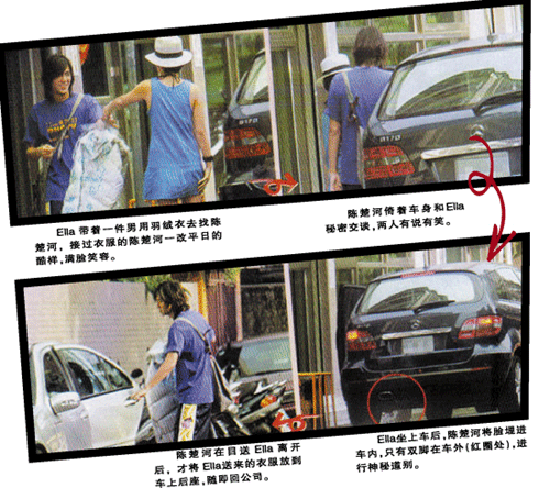 該報(bào)道指出,兩人是在周杰倫的牽線下認(rèn)識(shí),第一次見(jiàn)面就十分投機(jī),當(dāng)天互換電話(huà)和MSN,之后進(jìn)而交往。當(dāng)時(shí)陳楚河還告訴朋友“認(rèn)識(shí)了一位開(kāi)朗的女生,和她聊天真的很快樂(lè)”。之后因?yàn)槭懿涣薊lla常因小事鬧情緒,希望她平時(shí)獨(dú)立,和他在一起時(shí)要像小女人;加上陳楚河曾向電視臺(tái)高層推薦由Ella來(lái)?yè)?dān)綱《命》劇女主角,結(jié)果不僅傳出緋聞,還遭到“未紅先驕,拍戲還指定女主角”的批評(píng)。于是快刀斬亂麻決定分手。5月初Ella接受媒體專(zhuān)訪時(shí)談到一段刻骨銘心的秘戀,并公開(kāi)喊話(huà),“如果他開(kāi)口,我會(huì)和他復(fù)合,就算當(dāng)時(shí)我有男友了,也愿意為了他和男友分手!泵襟w當(dāng)時(shí)都將秘戀男主角指向吳尊,熟知的友人卻透露,訴說(shuō)的對(duì)象其實(shí)是陳楚河。不過(guò),就是Ella這段話(huà)打動(dòng)了陳楚河的心,讓他們重拾戀情。
