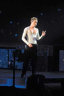 談到新裝“愛的戰(zhàn)衣”,郭富城指舞衣的重量加上28分鐘的歌舞雖感有點辛苦,但新裝是張叔平希望給觀眾的驚喜。
