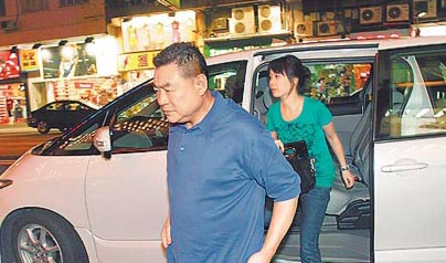 香港富商劉鑾雄(左)和女友一同到香港酒樓吃飯。