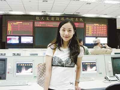 記者在博客上看到,果然有兩張攝于酒泉“神州七號”發(fā)射基地的照片。照片上,韓雪背了一個挎包,滿臉笑容地坐在發(fā)射基地指揮間內(nèi),表情十分興奮。她寫道:“進(jìn)入酒泉衛(wèi)星發(fā)射中心,大家都很興奮。不過就屬我和我們家小寧動作快,真有以前秋游的勁頭,總是跑在最前面。這不,占了個好位置,當(dāng)了一把神七的‘0號指揮員’,感覺不一樣!”