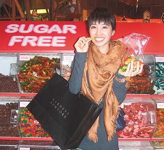 據(jù)臺灣“聯(lián)合報”報道,蔡依林上周赴美拍廣告,一到紐約的第一天,所有人放下行囊,以為要陪天后當(dāng)貴婦,到第五大道名牌店血拚,不料她急著在大街小巷找“無糖糖果”專賣店,第一天就抱回一大袋QQ熊和巧克力,還湊熱鬧地拍了照片,拿自己的肖像當(dāng)巧克力包裝紙。
