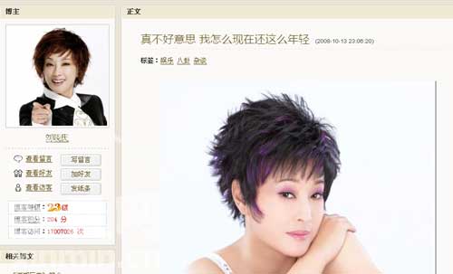 10月13日凌晨,57歲的劉曉慶用一篇博文《對(duì)不起,我怎么現(xiàn)在還這么年輕》回應(yīng)整容傳聞,再三強(qiáng)調(diào)自己是“純天然”容貌。她在博客中說(shuō):自己現(xiàn)在仍然這么年輕健康、充滿活力、陽(yáng)光燦爛,好像挺對(duì)不起大家似的。
