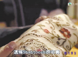 TVB臺慶巨制《珠光寶氣》正在如火如荼熱播中,不過近日有細(xì)心觀眾發(fā)現(xiàn),劇中使用了一種名為“沙圖什(Shahtoosh)”的披肩,讓不少正義觀眾相當(dāng)反感。記者通過觀看該劇發(fā)現(xiàn),引起爭議的劇情發(fā)生在第24集:賀家父子為討“康雅思”(蔡少芬飾)的喜歡,爭先恐后送沙圖什披肩以示愛意,并再三強(qiáng)調(diào)“很難得”、“很名貴”。賀哲男甚至說,自己這條比起父親的有過之而無不及,絕對更昂貴和奢華,而蔡少芬更是對這種披肩愛不釋手。