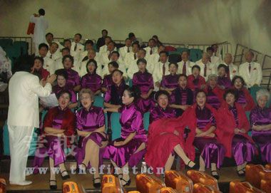 記者采訪時獲悉,前日凌晨1時,老人們才從央視排練結(jié)束,回到駐地,昨晨6點就起床集合。上午10時,合唱團全體成員再次走進央視,做彩排前的化妝造型準備。幾乎零睡眠的休息狀態(tài),著實讓人擔心,但領(lǐng)隊說,老人們想到真的要上春晚,前夜興奮得都沒睡好覺。當記者夸贊老人們白色西裝和紫色旗袍的演出服漂亮時,領(lǐng)隊頗有些得意地說:“我們之前準備了9套半服裝,光是女團員的旗袍顏色就有好幾種選擇,還為男團員分別準備了領(lǐng)花和領(lǐng)帶,以備春晚導演選擇!痹瓉砗铣獔F來京前,領(lǐng)隊就把演出服的顏色和相關(guān)樣式通過網(wǎng)絡(luò)發(fā)給了導演組,得到首肯后,只用了短短兩天,就趕制出來。正式上臺前的數(shù)個小時里,老人們一絲不茍地在演播廳外練唱,甚至連上臺時的臺步都反復排練。
