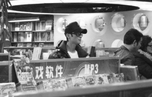 解約官司纏身的陳楚生當(dāng)天身穿黑色羽絨服,黑色帽檐拉得很低,腳穿白色休閑鞋,靜靜地站在顧客中看書并不是很顯眼。起初正在看碟的記者并沒(méi)有注意到陳楚生,直到迎面走過(guò)時(shí)才認(rèn)出他。