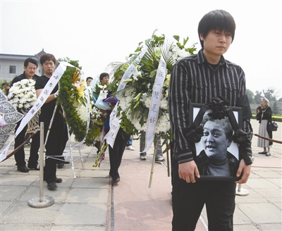 這是一場(chǎng)令人心碎的遺體告別儀式,看著在世時(shí)總是一副笑臉的丁霄漢躺在棺木中,無論影迷還是圈中好友無不掩面而泣,演員張海燕痛哭失聲幾乎暈厥,主持人叮當(dāng)則把一個(gè)憨厚可愛的加菲貓玩具放在丁霄漢的棺木旁!耙粋(gè)好人,從來沒見過他發(fā)脾氣紅過臉,做事認(rèn)認(rèn)真真!边@幾乎是很多圈中好友對(duì)丁霄漢的評(píng)價(jià)。近幾年,不斷有年輕演員離世的消息,不禁令人對(duì)演藝界普遍存在的健康問題更加關(guān)注。在現(xiàn)場(chǎng),記者聽到藝人間說得最多的一句話就是“多保重”。丁霄漢的離去,再一次給了演藝界同行敲了警鐘。