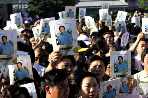 在哀樂聲中,不少群眾流下了眼淚,有的女性觀眾當(dāng)場嗚咽著說:“羅京一路走好!一路走好!”聲音極度悲戚。羅京的哥哥手捧遺像送了弟弟最后一程。整個過程中,羅京的哥哥一語未發(fā),雙目無神,表情悲痛,由于過于傷悲,這位中年人竟已捧不住手中那并不十分沉重的遺像,而是由倆位親友一直在一左一右用力攙扶才能前行。