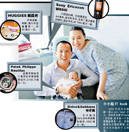爸爸小小超對(duì)愛(ài)兒甚為緊張,特派五名保鏢貼身保護(hù)他們母子的人身安全。另外,還有四名全職保姆照顧BB,一名私家看護(hù),為母子兩人監(jiān)察身體狀況,組成龐大的育嬰團(tuán)。