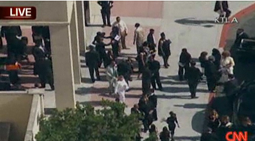 由杰克遜父母及家族成員所乘坐的20余輛黑色禮車,于當?shù)貢r間上午8時前由洛杉磯西邊的Encino豪宅出發(fā)。