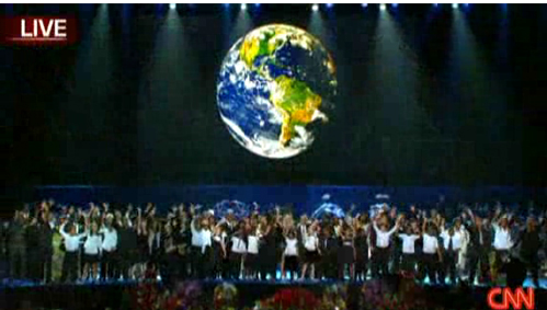 追思會(huì)的尾聲,在場的所有明星與杰克遜的家人一起上臺(tái)合唱其生前的知名歌曲《We are the world》與《Heal the world》。最后杰克遜靈柩在親友的護(hù)送下離開會(huì)場,象征流行巨星杰克遜的時(shí)代正式劃下句點(diǎn)。