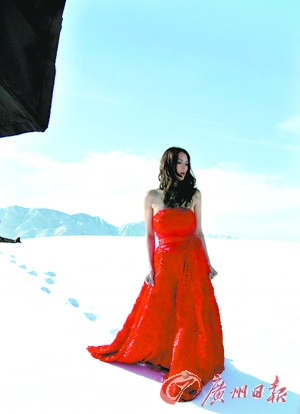 近日,名模馬艷麗在博客上公開自己為某著名服飾仲夏系列拍攝宣傳照的工作照。照片中,大漠、荒野、大雪,馬艷麗身穿紅色拖尾禮服。馬艷麗表示:“即使凍得皮膚和鼻子都沒有了知覺,但是心里卻是暖的!