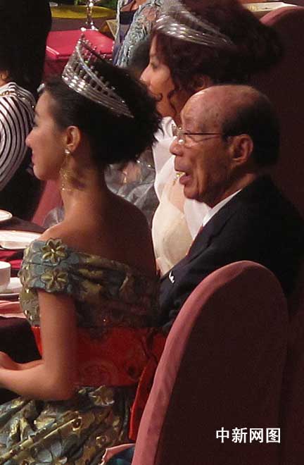 圖為102歲的邵逸夫先生全程觀看港姐決賽過程,興致頗高。(攝影:余瑞東)