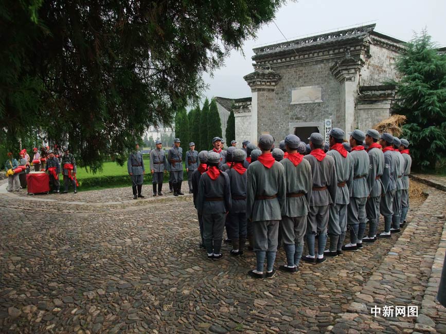 中新網(wǎng)9月18日電 大型建國獻(xiàn)禮片電視劇《鐵軍之花》(原名《新四軍女兵》)正在橫店拍攝。臺(tái)灣男演員黃維德在劇中飾演一名新四軍戰(zhàn)地服務(wù)團(tuán)的團(tuán)長,一路帶領(lǐng)新四軍女兵忠誠為黨效力。