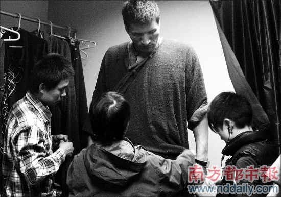 巴特爾的加盟一下讓劇組“如臨大敵”,除了趕緊訂購大床外,化妝組還為他連夜試妝,定做了數(shù)套衣服。但試妝過程還是困難連連,因為巴特爾實在太高,化妝師的身高往往只到他的腰間。巴特爾也是非常“緊張”,擔(dān)心把劇組的椅子坐壞,把化妝品用完:“我這樣的你們不是要用兩倍的化妝品?”
