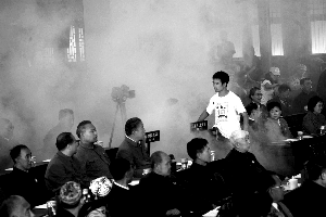 11時(shí)許,委員們攜手走進(jìn)了基地內(nèi)仿制的“中南海懷仁堂”,這里的道具都是模仿當(dāng)年的真實(shí)場景設(shè)置,包括桌上的水杯、文件封面。邁進(jìn)“會(huì)場”,大家表情嚴(yán)肅了許多,已連續(xù)3屆當(dāng)選政協(xié)委員的徐定茂回憶,自己第一次走進(jìn)人民大會(huì)堂履職時(shí),心情也非常激動(dòng),“第一屆會(huì)議具有特殊意義,可想當(dāng)年委員們的心情!痹趯(dǎo)演的指揮下,委員們落座,投入“默哀”、“選舉”等場景的拍攝中。記者傅沙沙