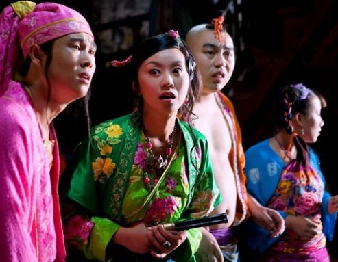 不知《三槍》中的這段舞能否征服觀眾,但有一點可以肯定,這么干把一群演員難為得夠嗆。據(jù)記者了解,最讓“三槍”演員痛苦的恰恰是學(xué)跳舞。片中有一段群舞,要求每個演員都要跳。可閆妮、小沈陽和倪大紅都毫無功底,身體協(xié)調(diào)性差,一個簡單的步伐怎么練都不得要領(lǐng),跳起來不是像做廣播體操就是像“摸了電門”。而為避免他們在全國觀眾面前“摸電門”,導(dǎo)演張藝謀親自上陣教舞,記者在片方發(fā)來的花絮中看到他比劃著,差點把閆妮和倪大紅給看傻了。