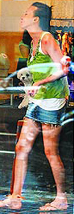 這時(shí)愛(ài)犬突然發(fā)瘋隔著玻璃對(duì)路人狂吠,還失控在店內(nèi)狂奔,蕭薔才移動(dòng)玉體小碎步把狗抓回來(lái);不過(guò)她似乎發(fā)現(xiàn)記者拍照,隨即戴上漁夫帽和大墨鏡變裝。