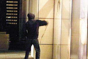 12月23日晚11點(diǎn)左右,在張曼玉訂婚的北京柏悅酒店外,一輛黑色奧迪Q7里下來四五個(gè)統(tǒng)一著迷彩樣服裝、戴著墨鏡的男子,走進(jìn)酒店問大堂里的保安:“章子怡住幾層?”保安未予理會(huì),這幾個(gè)人立刻站在酒店大堂內(nèi),用略帶東北口音的普通話高喊:“章子怡,大傻X!騙人錢!勾引人老公!”隨后離去。大約半小時(shí)后,這輛車又開到了酒店門前。車上下來兩個(gè)用套頭衫裹著自己的男子,手里拿著墨汁,走到酒店門東側(cè)一間章子怡代言的鉑金店門前,沖櫥窗里的章子怡海報(bào)潑了上去,然后撒腿跑向汽車。之后這輛車?yán)瘓?bào)離開。