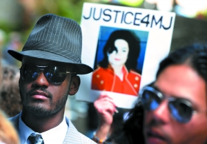 杰克遜的父母、妹妹珍妮·杰克遜等五名家族成員旁聽了當天的聽證會,整個過程一言不發(fā)。大批杰克遜歌迷身穿印有杰克遜頭像和“為邁克爾討公道”的T恤,舉著標語牌在法庭外聚集,要求將醫(yī)生默里繩之以法,同時合唱著杰克遜的經(jīng)典歌曲《We are the World》。默里從車內出來迅速進入法院時,歌迷發(fā)出一片噓聲。