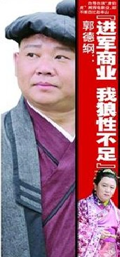 昨日,郭德綱接受本報專訪,說起是不是效仿趙本山,他表示自己“進軍商業(yè)狼性不足”。