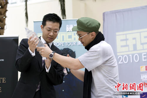 在接收旅英福建籍僑領(lǐng)、大本鐘獎(jiǎng)組委會(huì)主任李俊辰授予的證書和獎(jiǎng)座時(shí),陳奕迅表示非常高興可以參與并獲得這項(xiàng)和全球華人青年相關(guān)的重要獎(jiǎng)項(xiàng)。