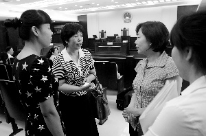 法官隨后只得向旁聽人員說明情況,旁聽人員對關(guān)之琳一方無視法律規(guī)定的行為非常不滿。雅鹿集團到場的一位顧問招呼另一被告好友世界商場的代理人,“撤訴了,可以走了!(如圖)好友世界商場的代理人此時也不明就里,“他們和解的事,我們都不知道,還準(zhǔn)時來參加庭審。”法官、書記員及兩被告的代理人,一直苦等關(guān)之琳的代理人來辦理撤訴手續(xù),但直到11時,該代理人才姍姍來遲!澳銈兝速M訴訟資源,對你們提出警告。”面對法官的批評,該代理人一言不發(fā)。(首席攝影記者 吳寧/攝)