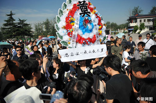 上午9時(shí)許,羅京遺體告別儀式開(kāi)始,先是親屬送別,然后是羅京生前所在的中央電視臺(tái)的同事們,最后是社會(huì)各界群體。自發(fā)前來(lái)悼念的群眾眼含熱淚,排著長(zhǎng)達(dá)四五百米的隊(duì)伍,而在等待進(jìn)入告別廳期間,一位中年婦女中暑暈倒,被攙扶出去休息。