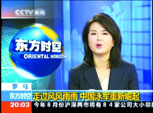 有意思的是,在進(jìn)行游泳世錦賽的報(bào)道時(shí),當(dāng)張泉靈談到張琳時(shí),屏幕左上角就立刻出現(xiàn)一個(gè)畫(huà)筆,動(dòng)態(tài)地描摹出張琳的彩色鉛筆畫(huà),增添了喜感,讓人感覺(jué)尤為輕松。另外,主播語(yǔ)言“家;币彩且粋(gè)很明顯特點(diǎn)。