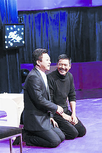 發(fā)哥上臺的第一句話就和朱軍談起了他在書中看到的朱軍父親的故事,孝順是溝通兩個中年男人最好的寒暄語,于是節(jié)目一如既往的順利,觀眾的掌聲和笑聲此起彼伏。發(fā)哥場上也不拿自己當(dāng)外人,“擅自指揮”“關(guān)燈”,實施自己的節(jié)目計劃,當(dāng)發(fā)哥跪在舞臺上,并傾情的講述緣由的時候,朱軍以同樣誠意的姿勢“還禮”。發(fā)哥執(zhí)意要給朱軍行一個叩拜大禮,叩拜的原因是朱軍對仙逝父親的孝順,叩拜的是一種禮儀,更是一種精神,源于拍攝孔子數(shù)月的體會。這是我在《藝術(shù)人生》開播的9年中,見到的嘉賓中絕無僅有的表達(dá)方式,我們也被深深打動,這個對于中國人來講,最重要的禮儀姿勢,是絕對不能拿來娛樂的。我們也佩服發(fā)哥的膽量,我們尊重發(fā)哥,是因為他尊重節(jié)目,尊重了我們心中共同的誠意和精神。