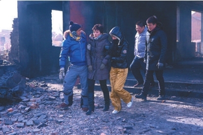 在郊區(qū)的片場(chǎng),不但氣溫極低,還刮著五六級(jí)的西北風(fēng),而樓房周圍連安裝保護(hù)措施的位置都沒(méi)有,工作人員全棉服上陣還冷得跺腳,可憐的袁立最后凍得連說(shuō)話都張不開嘴了,而當(dāng)她聽到許小寧發(fā)自心靈的呼喚時(shí),臉上仍然很快就流下幸福的眼淚,表演功力非常了得。在這場(chǎng)戲中臺(tái)詞最多的黃磊也被大風(fēng)搞得面目全非,臉龐黑得像火炭,但他仍情愿為自己喜愛的角色奉獻(xiàn)。