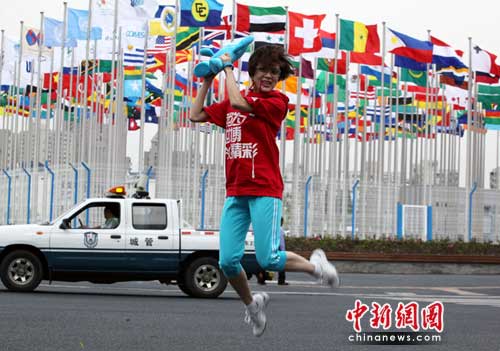 中新網(wǎng)5月7日電 5月6日,演員、歌手金巧巧輕裝來到上海,搭上2010上海世博會首周游覽的末班車。此行,金巧巧很是悠閑自得,隨行僅一名助理,在接受媒體采訪時她說,“北京在一場大雨之后天氣熱了好多,沒想到上海更是熱得不行!