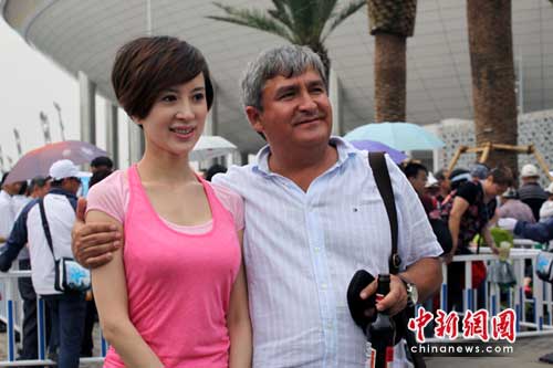 記者采訪期間,一名外國影迷請求合影,金巧巧親切地對他說:“Welcome to ShangHai!”這位朋友趁機一個熊抱金巧巧,還用一口洋味兒的普通話說:“你太漂亮了”。