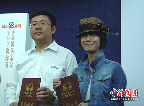 中新網(wǎng)5月10日電 (李季) 10日上午,《壹百度》的姊妹篇《壹百度2——人生可以走直線》在北京大學(xué)舉行首發(fā)儀式。王珞丹作為新書公益大使除了幫助職場新人解讀“陽光法則”外,還向中國扶貧基金會“宣告”:每賣出一本《人生可以走直線》自己將與百度一起為扶貧基金會“新長城自強(qiáng)助學(xué)基金”捐出一元錢。