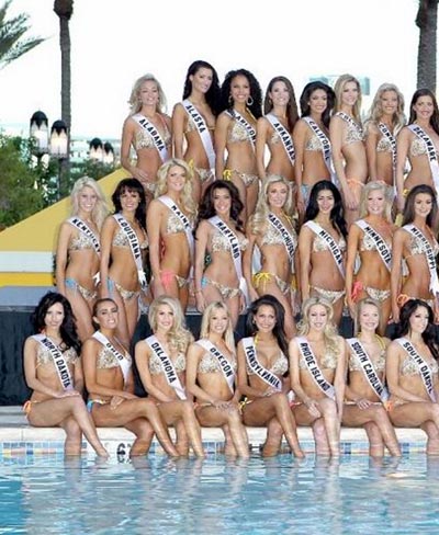 中新網(wǎng)5月14日電 據(jù)“聯(lián)合晚報(bào)”消息,美國小姐競選將于周日在拉斯維加斯舉行,主辦單位今年居然開創(chuàng)先河,賽前為佳麗拍攝性感內(nèi)衣黑白照搏宣傳,部分佳麗更真空上陣穿上襯衫,主單辦位也在網(wǎng)站公開51名佳麗的性感內(nèi)衣照,眾美擺出撩人姿態(tài)。其性感養(yǎng)眼程度,叫所有美國老百姓簡直快吃不消,許多報(bào)紙直批,此次選美大會(huì)根本就是“賣肉集團(tuán)”。