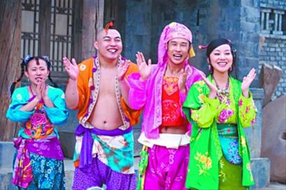 小沈陽本人膚色非常白,他的戲裝又是鮮艷的粉色,這正是張藝謀想要的反差效果。小沈陽的皮膚也得到張藝謀的不住稱贊,說他像“韓國明星”。在片場(chǎng),每一條拍完之后,張藝謀就會(huì)招呼工作人員給小沈陽打傘,千萬別讓他曬黑,甚至還跟大家交流起了哪個(gè)牌子的防曬霜效果最好。