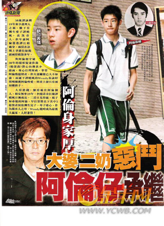 雖然現(xiàn)階段阿倫極力避免讓兒子曝光,但據(jù)知他眼見愛子外形討好,又遺傳了自己的歌唱天分,現(xiàn)已有七級鋼琴的造詣,故有意帶兒子入行。據(jù)唱片公司職員爆料:“阿倫整天在高層面前提起自己的兒子,說他長得帥唱歌又好!逼鋵崳藶閮鹤愉伜寐,身家豐厚的阿倫也在積極為愛子的生活作打算。雖然阿倫大部分財產(chǎn)都由發(fā)妻莎莉掌管,但真正歸莎莉所有的物業(yè)只有約值3000萬元,而保守估計阿倫坐擁逾5億資產(chǎn)。為防他日“兩房”爭寵,同時也為兒子的將來著想,據(jù)知阿倫早就打算將資產(chǎn)轉(zhuǎn)到兒子名下!岸獭盬endy雖然現(xiàn)在僅有兩個房子在手,但作為5億家產(chǎn)繼承人之母,下半世當然不用愁!(阿文)