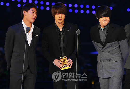“聯(lián)合報(bào)”援引韓國(guó)媒體消息,自7月底與SM娛樂(lè)公司發(fā)生合約糾紛以來(lái),這是他們3人首次重登舞臺(tái),細(xì)亞俊秀在獲獎(jiǎng)感言中說(shuō)道:“非常榮幸能獲得‘亞洲之星’大獎(jiǎng),這個(gè)獎(jiǎng)是我們5個(gè)人一起拼出來(lái)的!泵仄嬗刑煲脖硎荆浅P疫\(yùn)能夠成為歌手,能夠遇見東方神起的成員們,能夠取得今天這樣的成績(jī)。