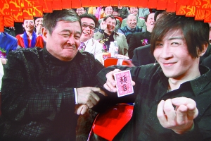 獲得語(yǔ)言類(lèi)一等獎(jiǎng)的本山大叔在元宵晚會(huì)上依然是只露面不表演。去年元宵晚會(huì)上,小沈陽(yáng)一人登臺(tái)獨(dú)唱《大海》,不僅現(xiàn)場(chǎng)唱得趙本山淚水漣漣,也讓大家對(duì)師徒二人之間的情誼留下深刻印象。此前有消息稱(chēng)今年元宵晚會(huì)小沈陽(yáng)和王小利將表演二人轉(zhuǎn)絕活,但最終小沈陽(yáng)、王小利及趙本山首位歌手徒弟湯潮合唱了一首歌曲《美了美了》,以此“慶!钡锚(jiǎng)之后的好心情。