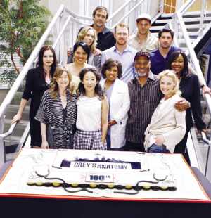 描寫醫(yī)務(wù)人員生活的熱門美劇《實(shí)習(xí)醫(yī)生格蕾》日前完成了第100集的拍攝工作。劇組在洛杉磯的片場舉辦了一個慶祝派對,并特意準(zhǔn)備了一個帶有“聽診器”、 “手術(shù)刀”等圖案的大蛋糕。包括帕特里克·德姆西、桑德拉·歐、凱瑟琳·海格爾(前排右一)等主演均到場留下了“全家!。