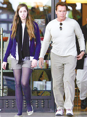 施瓦辛格16歲女兒亮相 個頭幾乎與老爸并肩(圖)