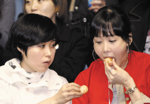奧運(yùn)手球亞洲區(qū)預(yù)選賽29日在東京舉行,場(chǎng)邊支持的觀眾包括了韓國(guó)女星文素利(左)與金正恩,在新片《我人生中最精彩的瞬間》里扮演手球隊(duì)員的她們,是專程前往支持韓國(guó)女子手球隊(duì)。只不過(guò)兩人空隙吃桔子的模樣,似乎有點(diǎn)失態(tài)。